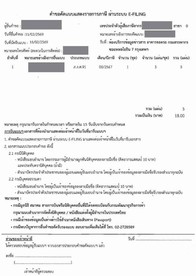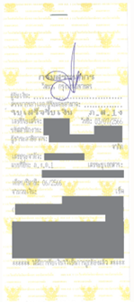 ※添付はRegion2 Area Revanue13 Khlong Toei1のフォーマットです。所轄の歳入局によりフォーマットが異なりますのでご確認ください。